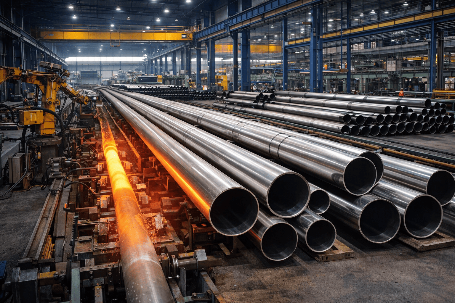 مواسير حديد بسماكات وأطوال مختلفة للاستخدامات الإنشائية والصناعية.