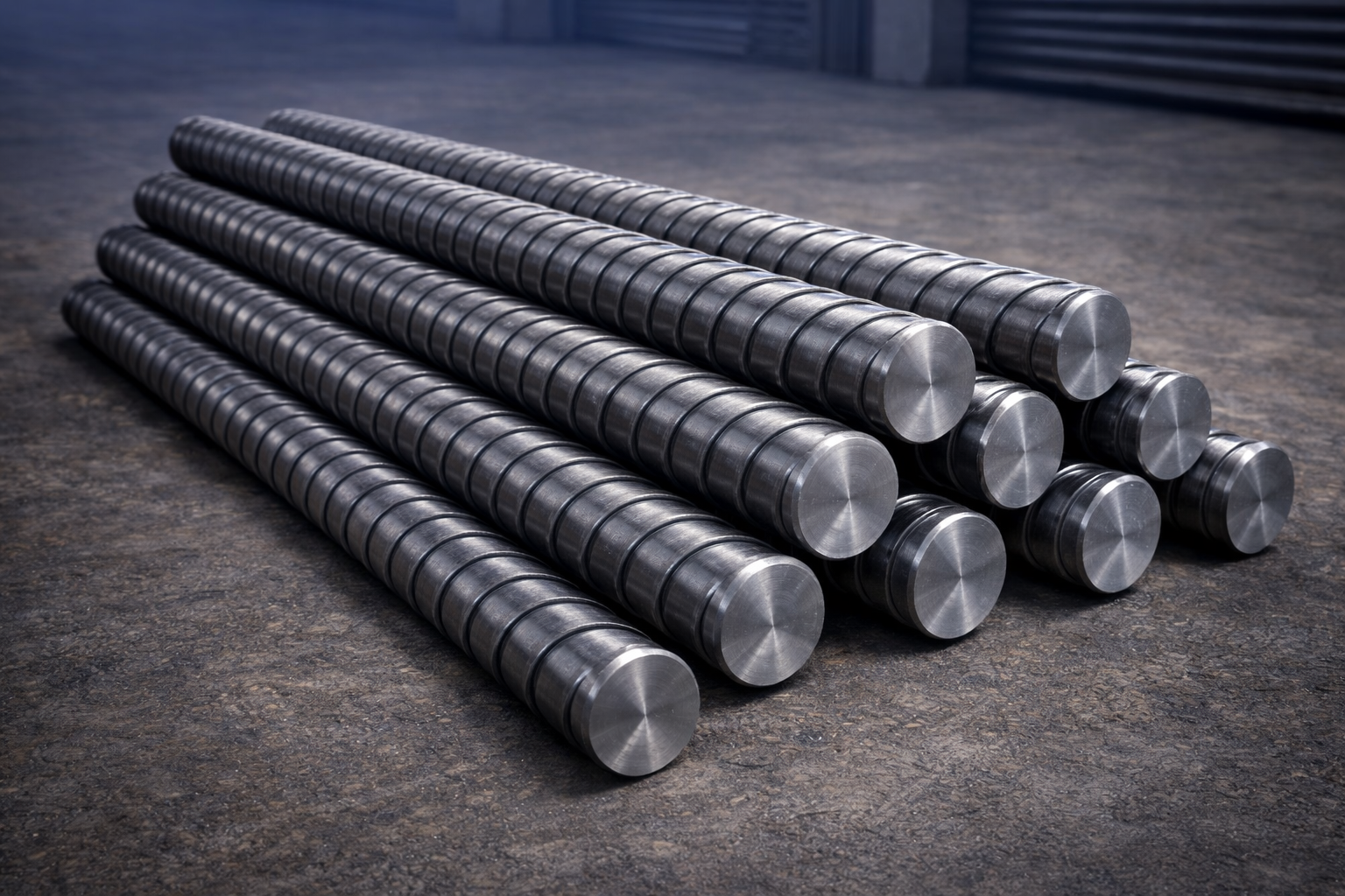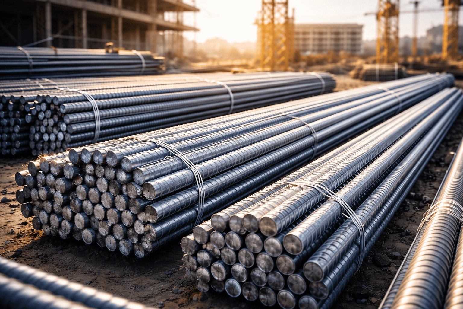 حديد تسليح بمقاسات وأقطار متعددة مطابق للمواصفات الهندسية للمشاريع السكنية والتجارية.