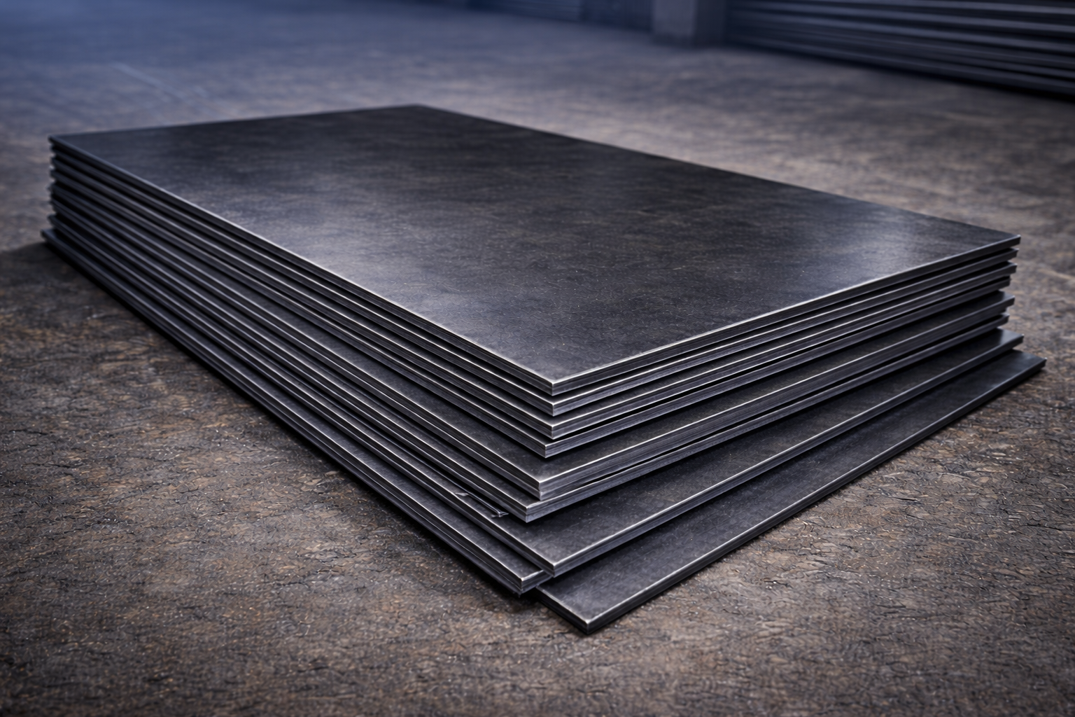 صفائح حديد وفولاذ بسماكات متعددة مناسبة لأعمال القص والتشكيل والتصنيع.