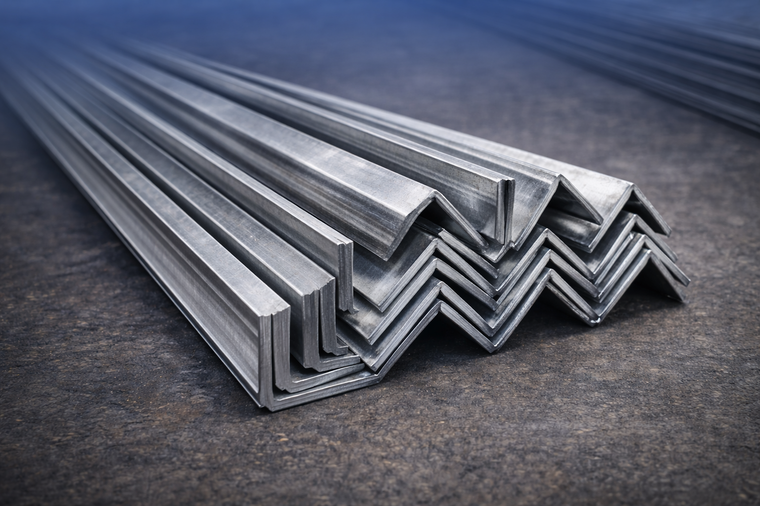 زوايا حديد جاهزة بمقاسات مختلفة تُستخدم في الهياكل المعدنية وأعمال التدعيم.