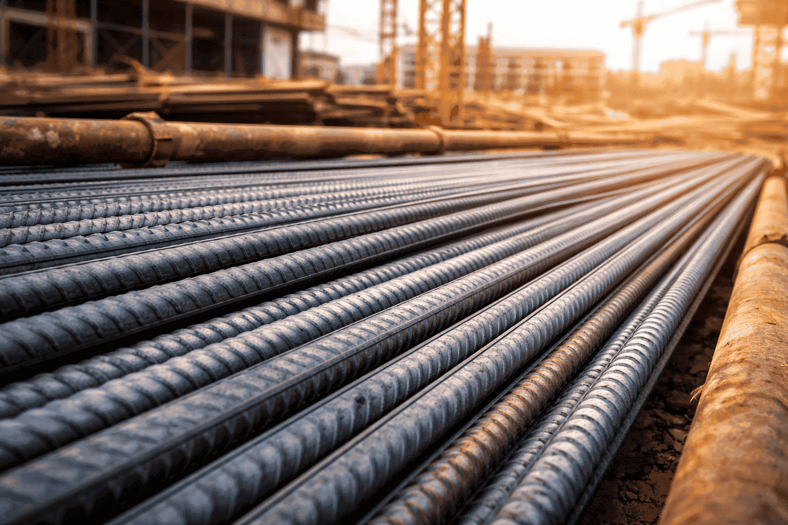 حديد تسليح بمقاسات وأقطار متعددة مطابق للمواصفات الهندسية للمشاريع السكنية والتجارية.