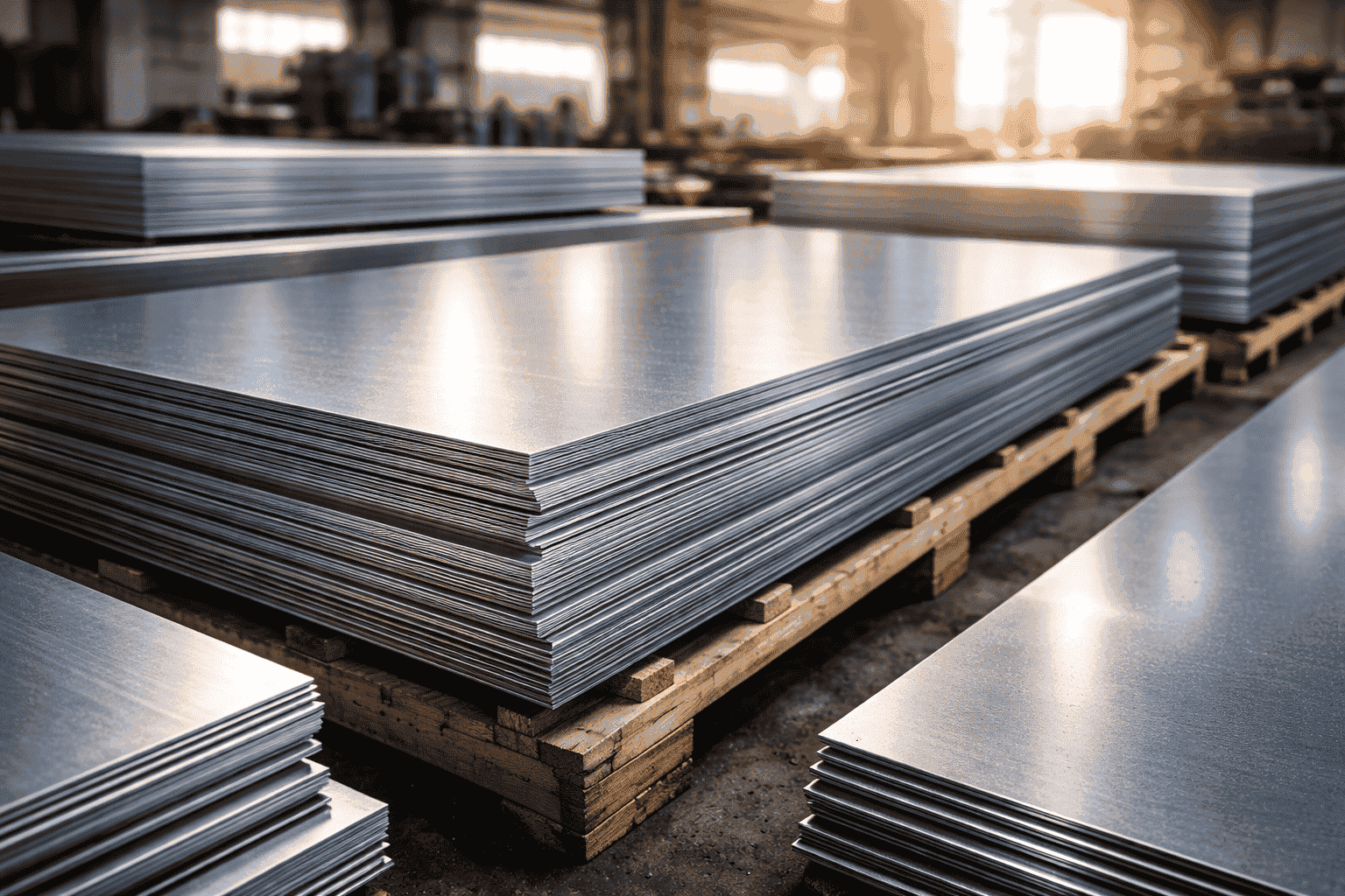 صفائح حديد وفولاذ بسماكات متعددة مناسبة لأعمال القص والتشكيل والتصنيع.